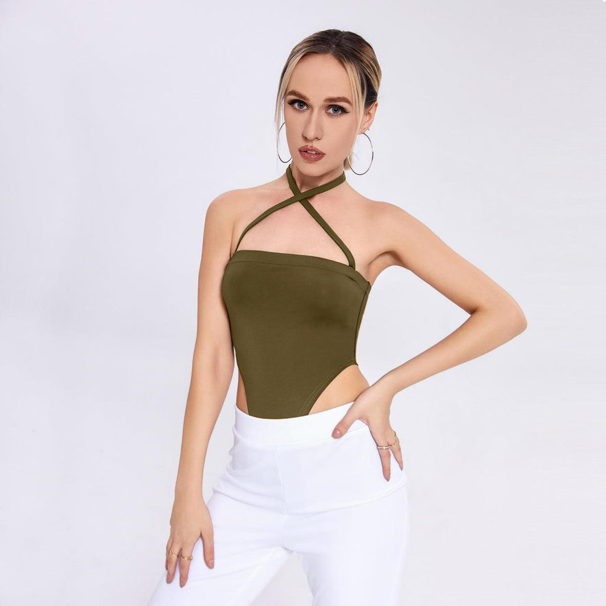 2023 Fashion New Women's One -word Collar Hanging Neck Band -lap Background Bodsuit