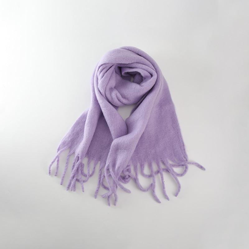 All-match Soft Glutinous Solid Color Cashmere-like Tassel Scarf For Women