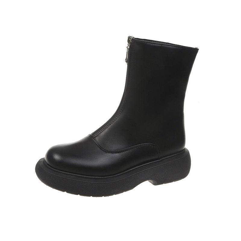 Autumn And Winter New Fashion Leather Thick-soled Front Zipper Ankle Boots