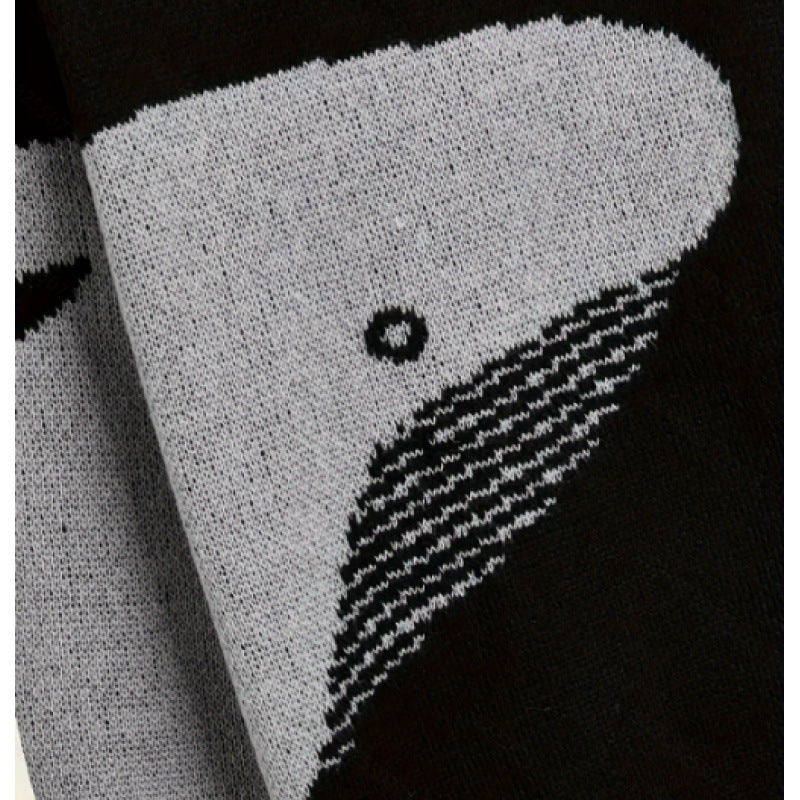Autumn Winter Japanese Cartoon Whale Round Neck Men's Fashion Brand Couple Casual Loose All-matching Pullover Sweater