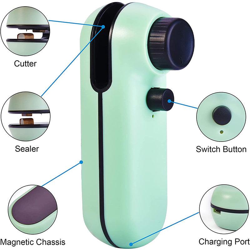 Bag Sealer, 2 In 1 Mini Bag Sealer Heat Seal Rechargeable And Cutter, Mini Chip Bag Sealer Heat Seal With Soft Magnetic Portable Heat Sealer With Cable USB Rechargeable Food Bag Sealing Machine