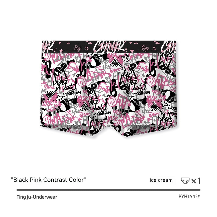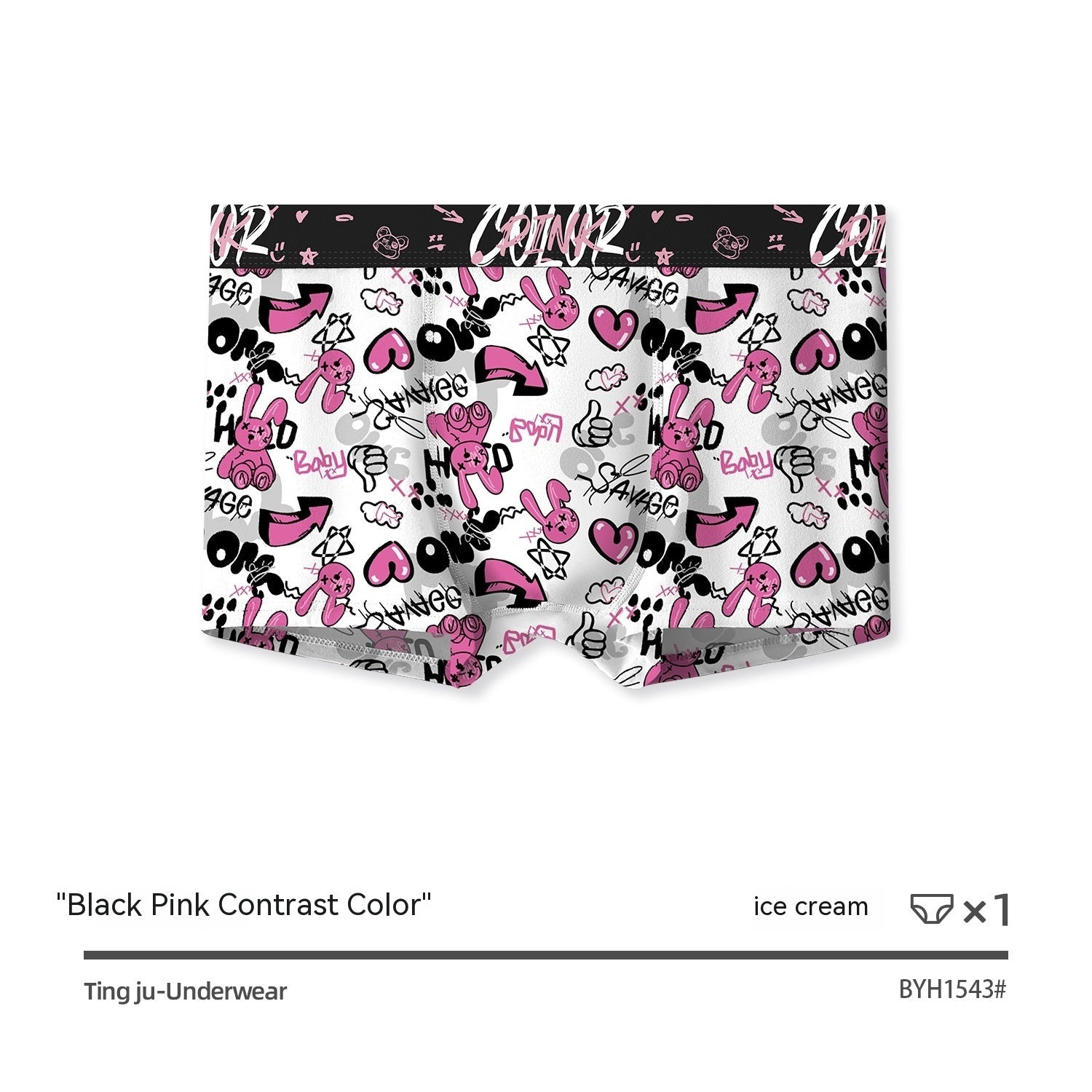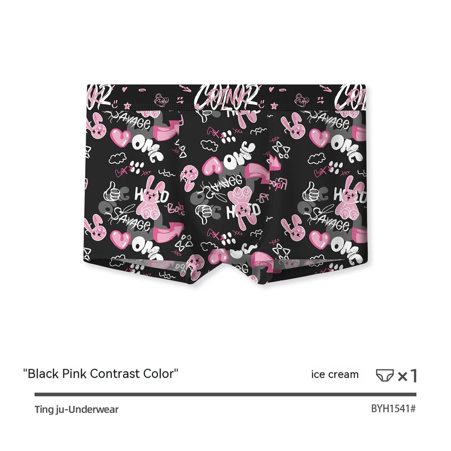 Black Pink Breathable Antibacterial Crotch Mid Waist Boxer Briefs Men