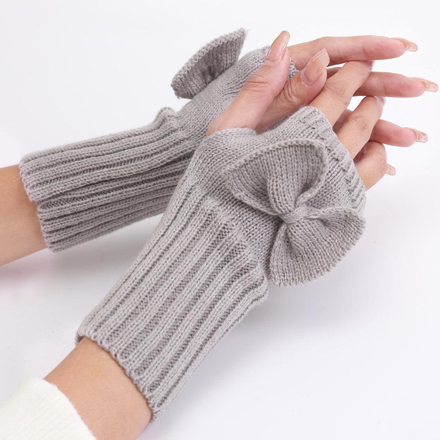 Bow Knitted Wool Keep Warm Half Finger Fingerless Gloves