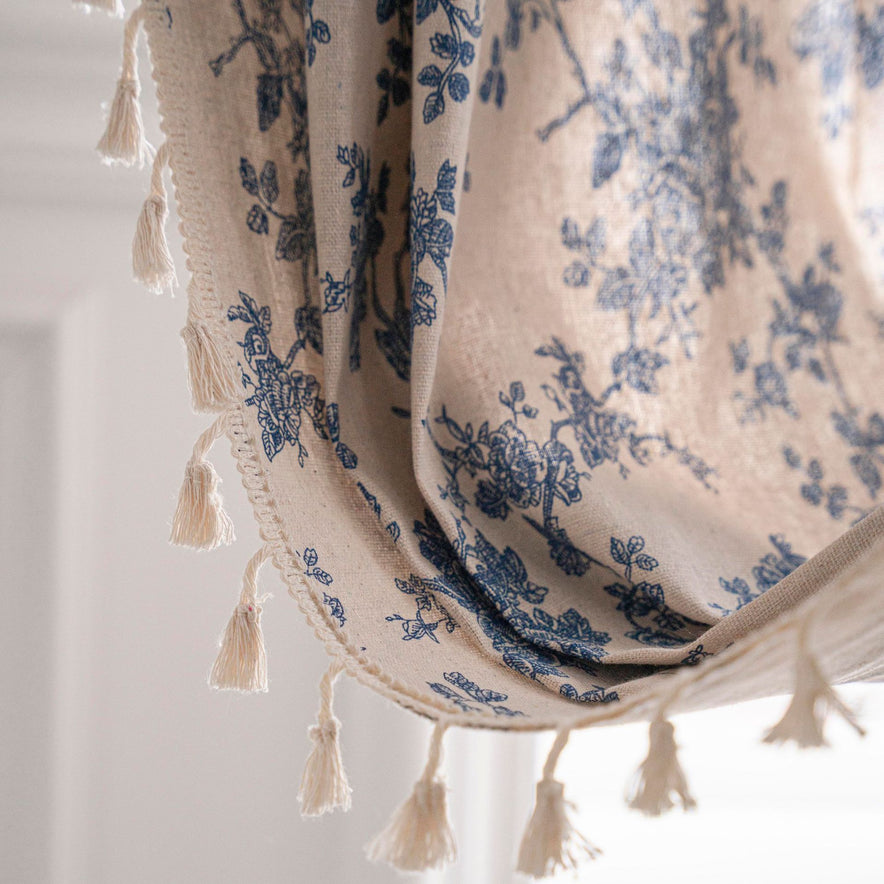 Cotton And Linen Printing Kitchen Curtain Beige Tassel Small Window Half Shade Bay Window Decoration