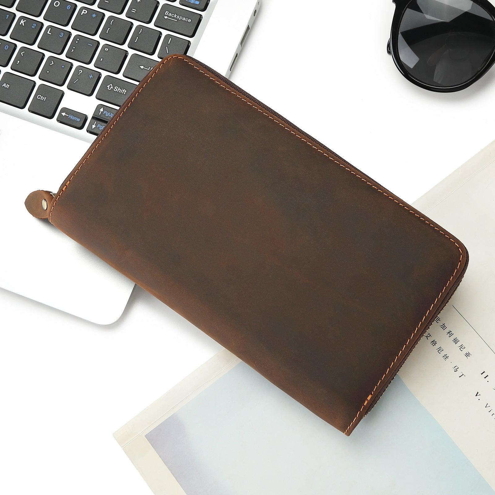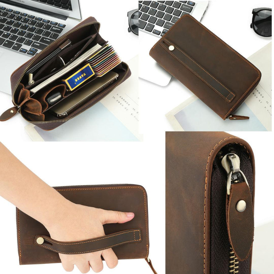 Cowhide Grab Bag With Large Capacity Retro And Simple Men's Long Style