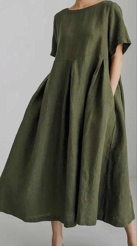Crew Neck With Pocket Loose Dress, Casual Short Sleeve Solid Simple Versatile Dress For Spring & Summer, Women's Clothing
