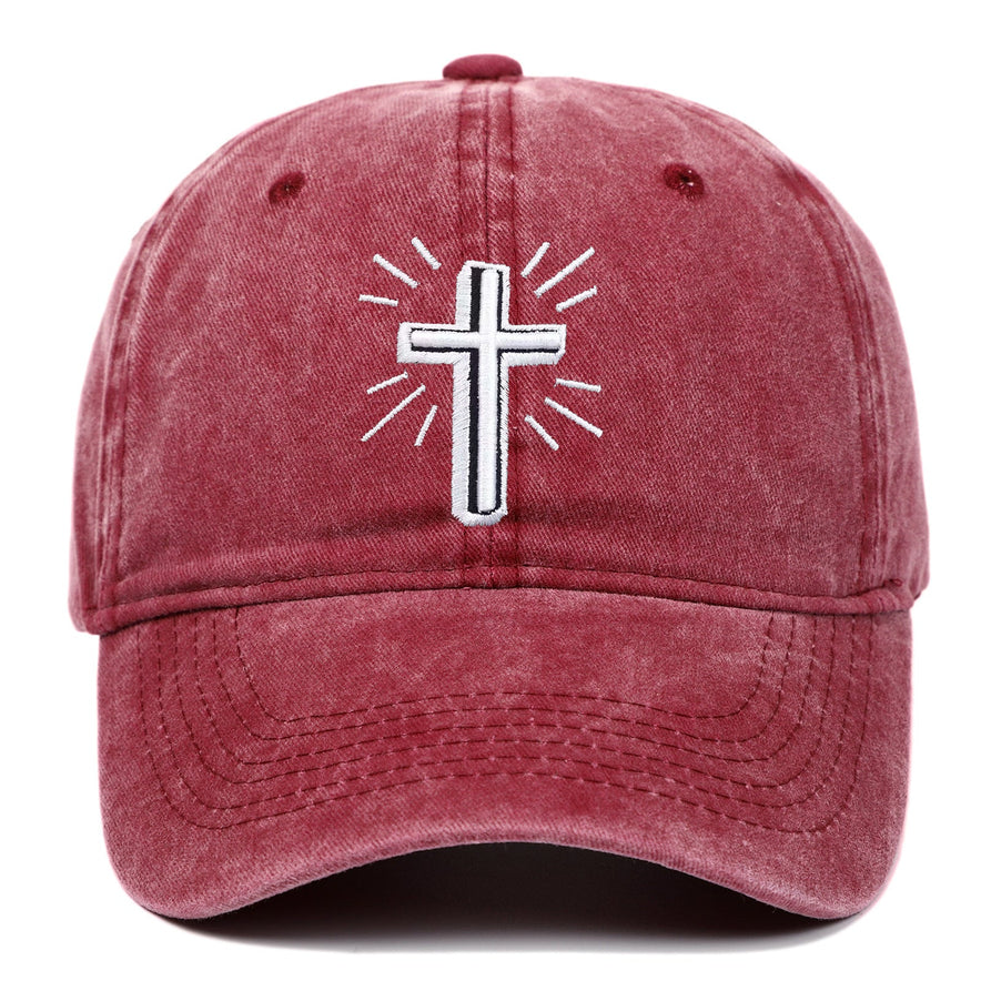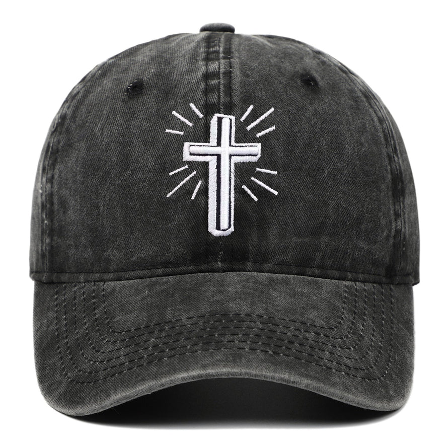 Cross Embroidered Baseball Cap Worn Looking Washed-out