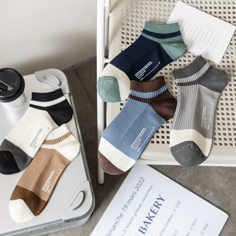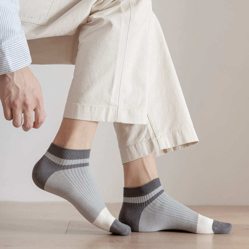 Double Needle Strip Hot Stamping Combed Cotton Men's Boat Socks