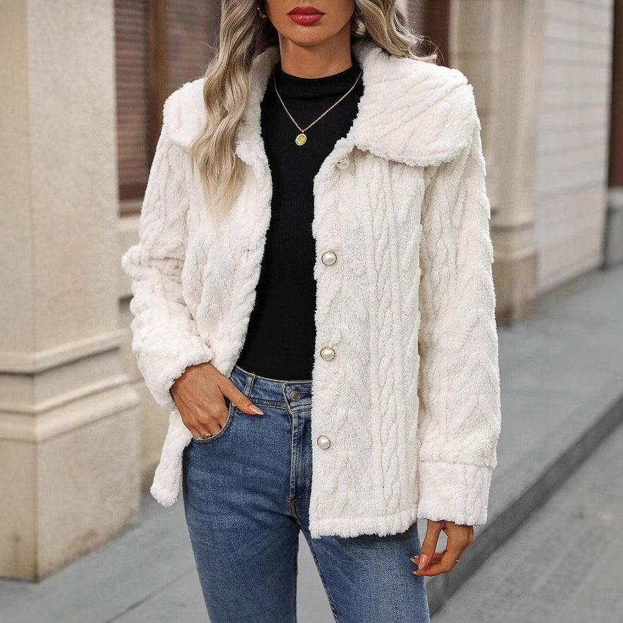 Double-sided Plush Large Lapel Casual Cardigan Coat Women