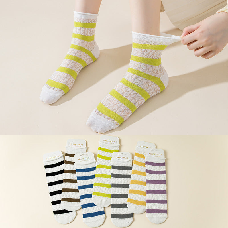 Elastic Kanekalon Striped Bunching Socks Women's Mid-calf Ins Breathable Mesh Loose Confinement Socks
