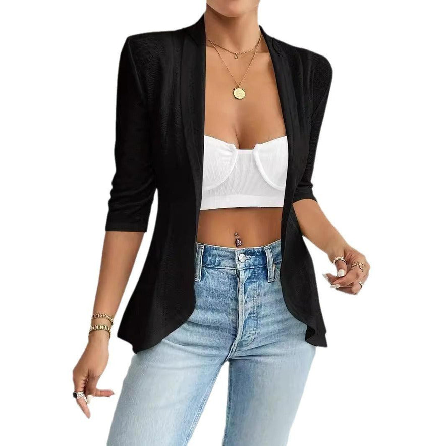 Europe And America Cross Border New Women's Ladies Hollow Fabric Cardigan Coat