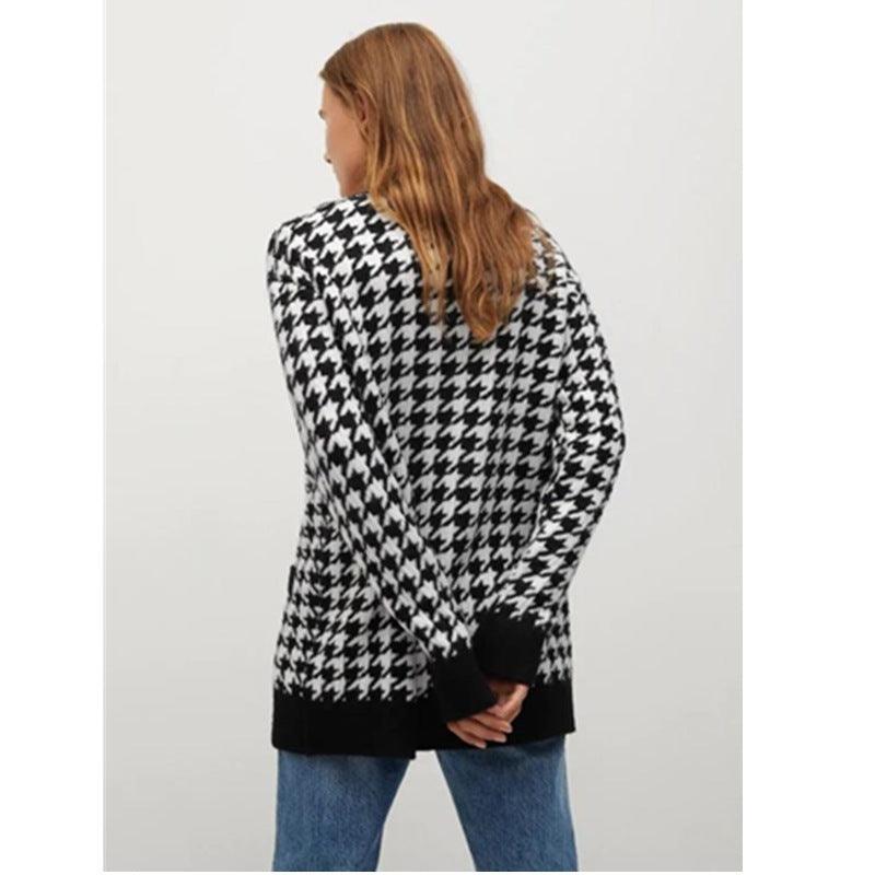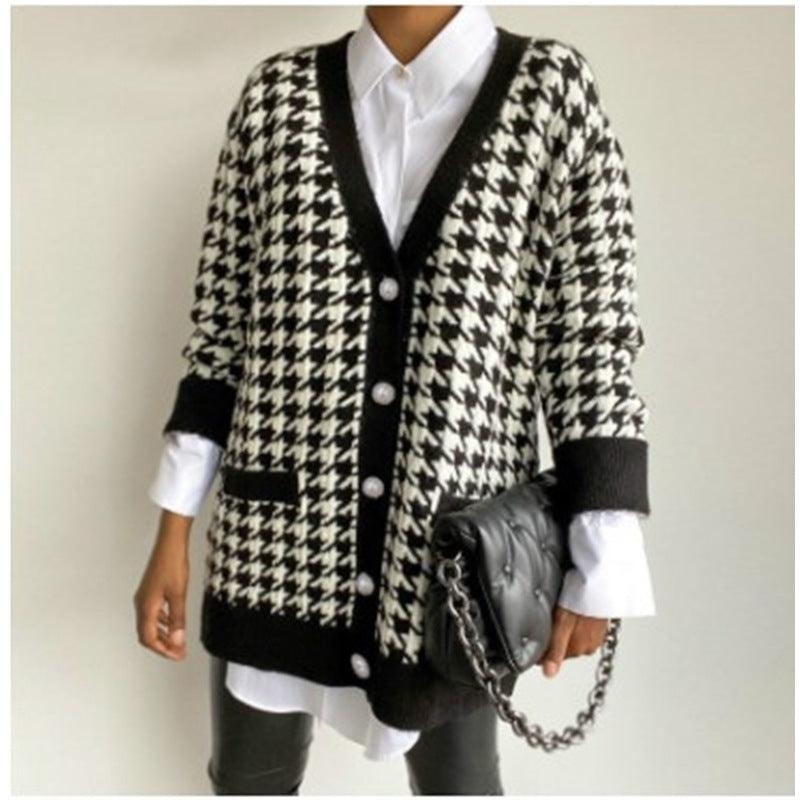European and American Checked Commuter Knit Pullover Loose Casual Cardigan