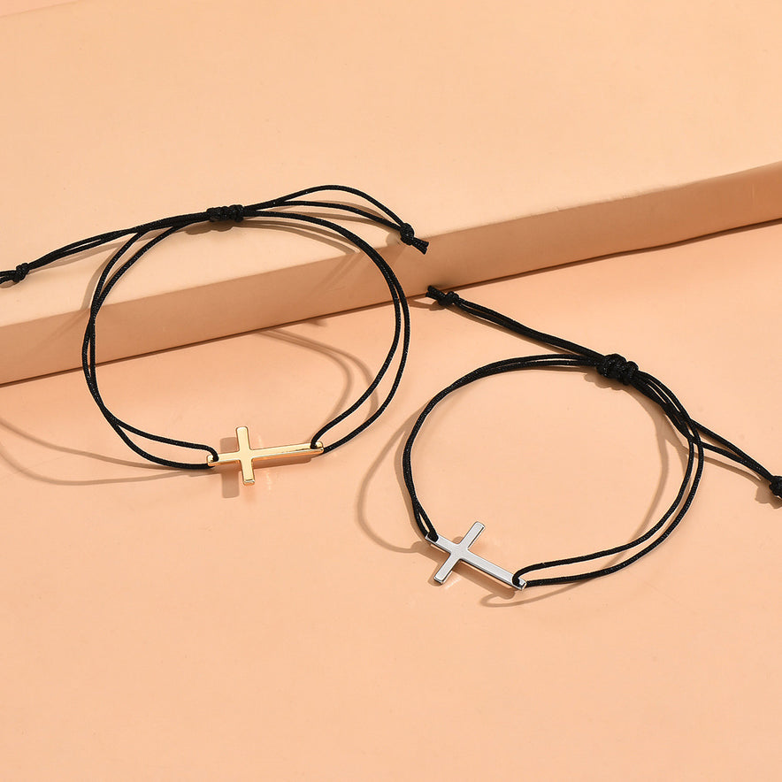 European And American Simple Alloy Cross Wax Rope Couple Bracelet Pair