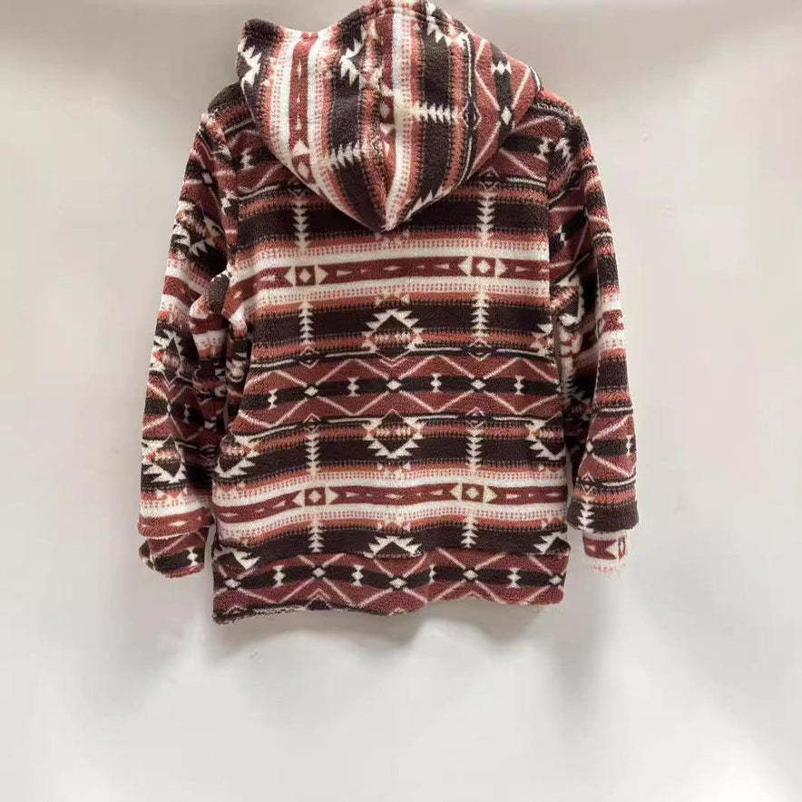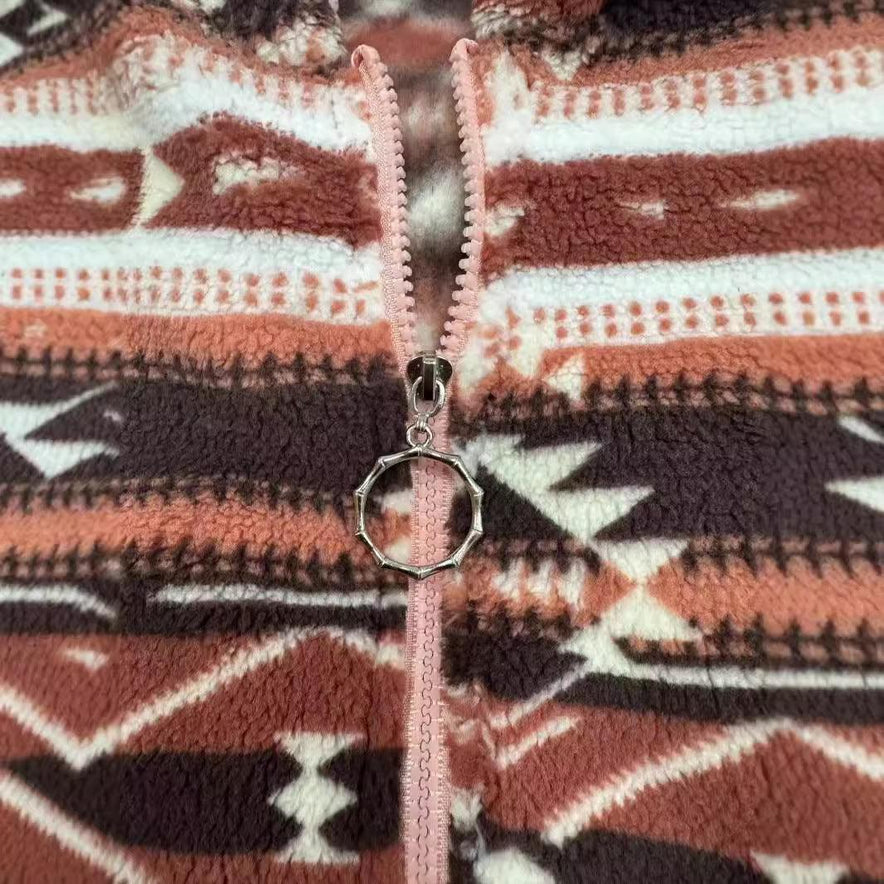 Fashion Casual Geometric Pattern Printed Hooded Zipper Jacket