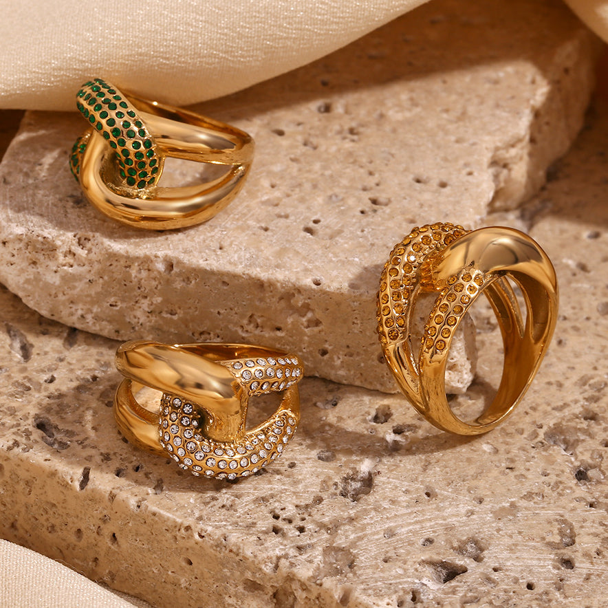 Color: Cross-knotted contrast zircon ring-gold champagne, cross-knotted contrast zircon ring-Gold White, cross-knotted contrast zircon ring-Gold Green
