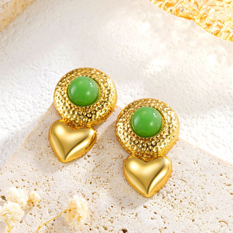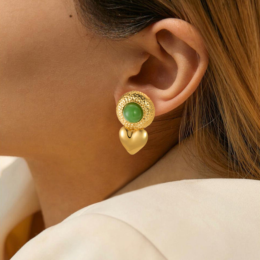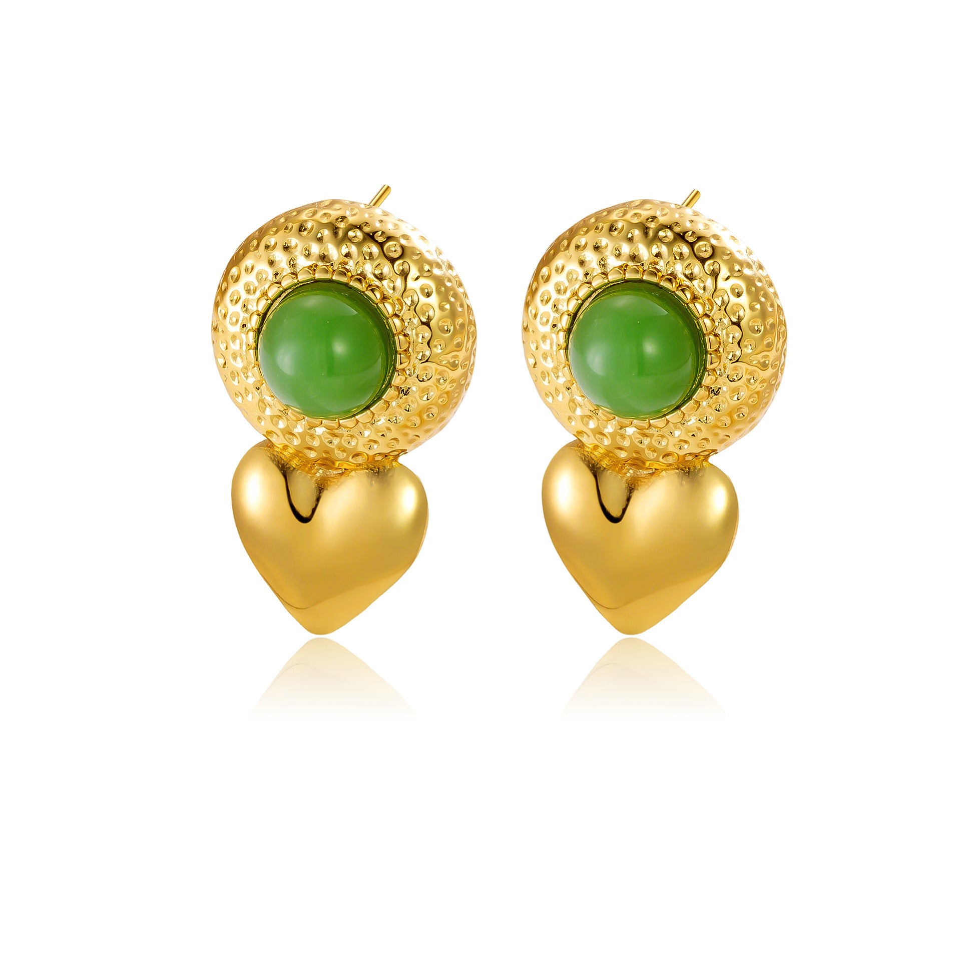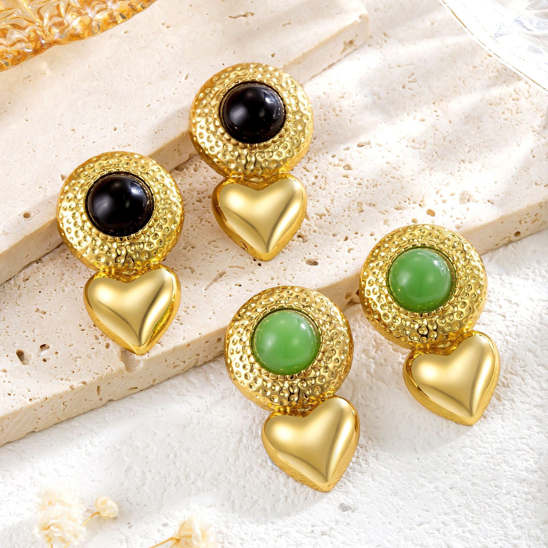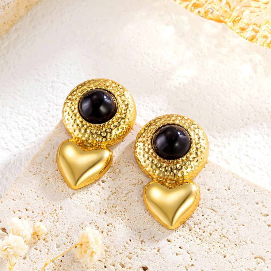 Fashion Titanium Steel Hammered Inlaid Black Stone Love Heart Earrings