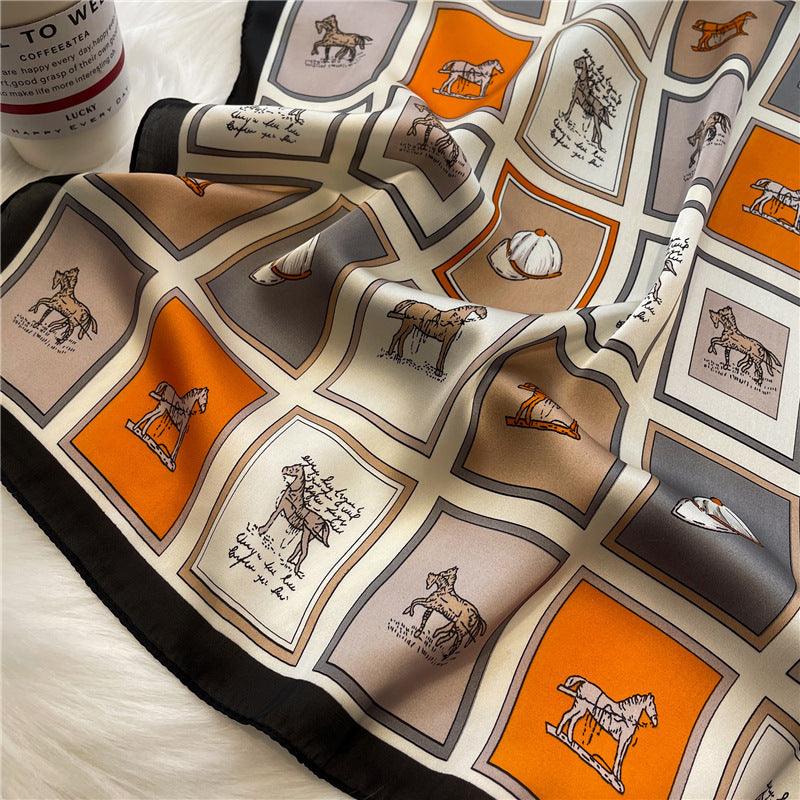 Fashionable New Silk Scarf 70cm Checkered Color Matching Women