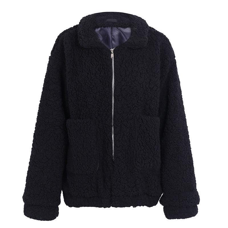 Faux lambswool oversized jacket coat Winter black warm hairly jacket Women autumn outerwear