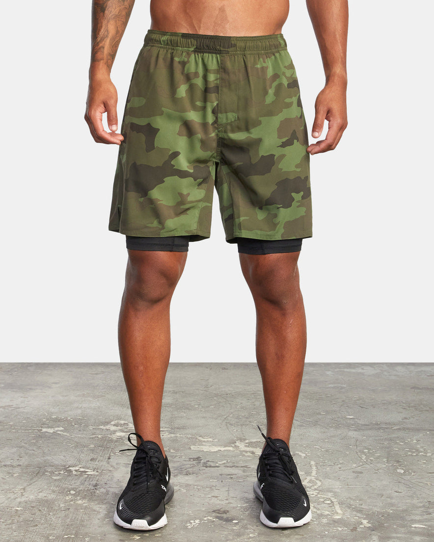 Fitness Summer Sports Casual Solid Color Camouflage Double-layer Shorts Men