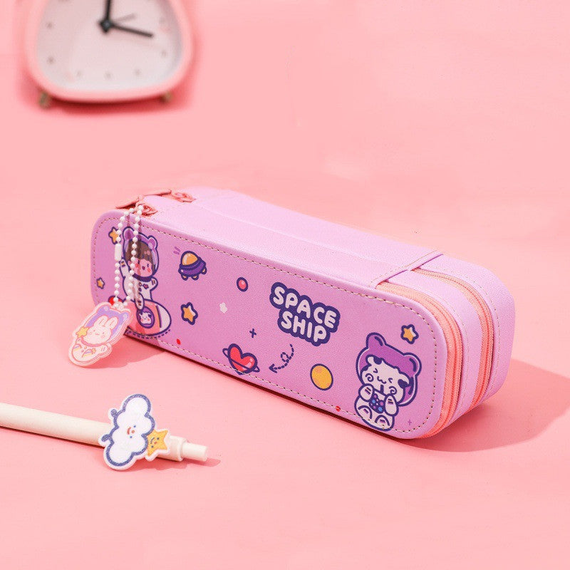 ins cartoon pencil case cute astronaut double-layer pencil case