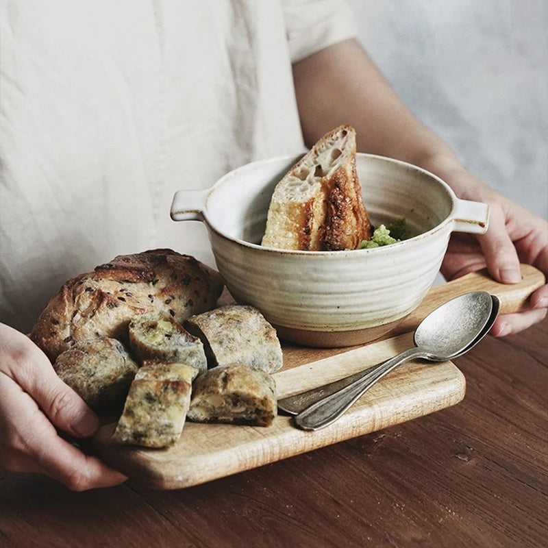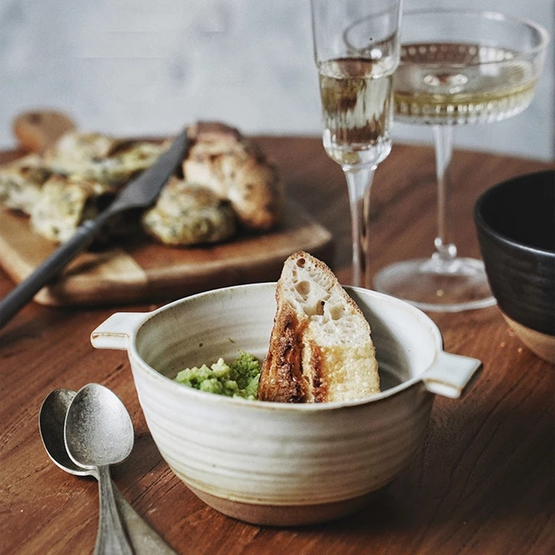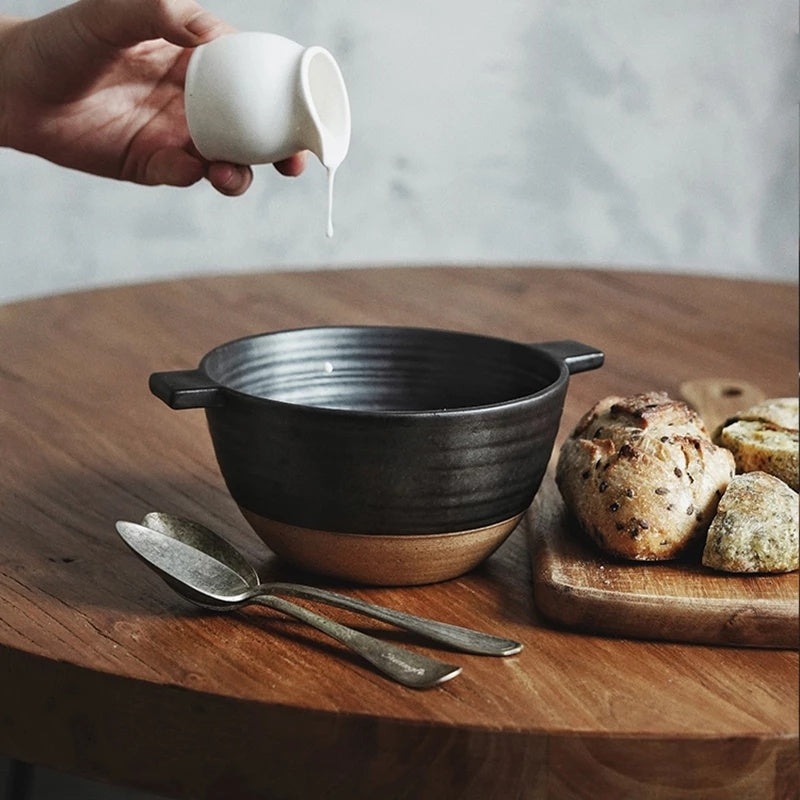 Japanese Stoneware Amphora Bowl Vintage Ceramic Tableware