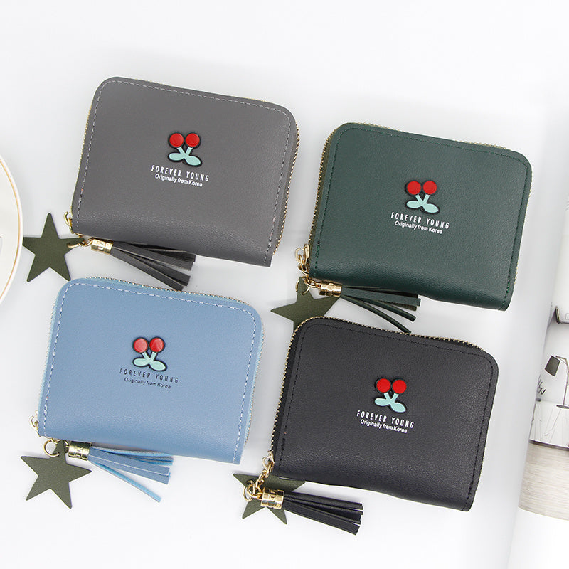Ladies Wallet Short Cartoon Cute Cherry Clutch Bag Little Girl Coin Purse Zipper Bag