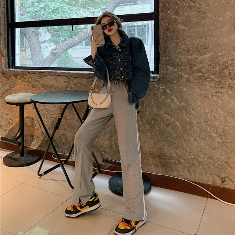 Color classification: single piece of denim jacket, single piece of gray sling, single piece of gray pants