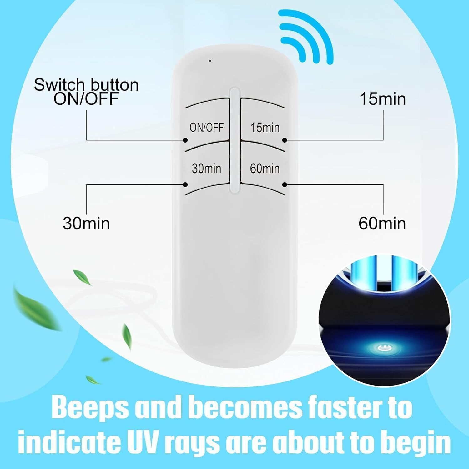 (After selecting the time, please leave the disinfection point in good time. The lights will then turn on immediately for disinfection.)