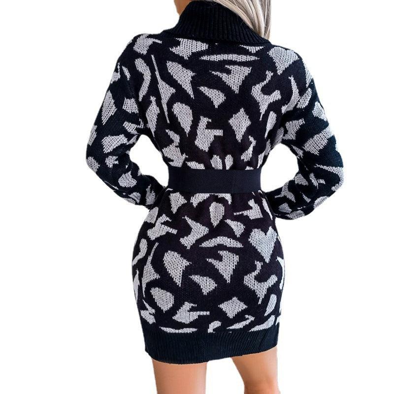 Leopard Print Long Sleeve Bottoming Sweater Dress