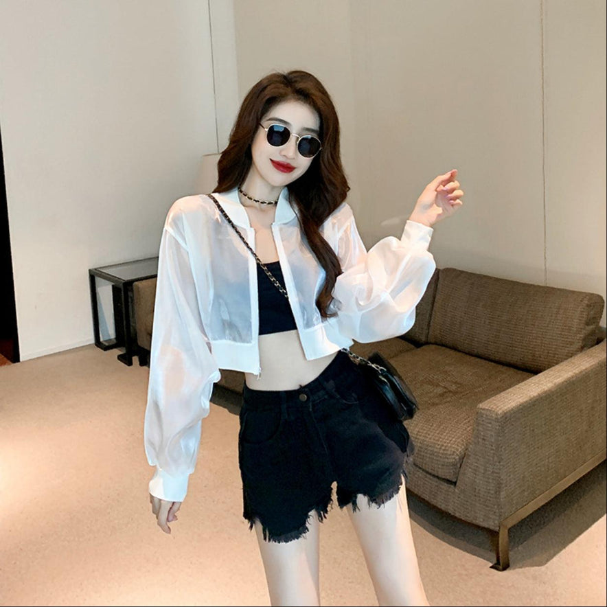Lightweight Zipper Bright Silk Streamer Texture Short Sun Protection Clothing