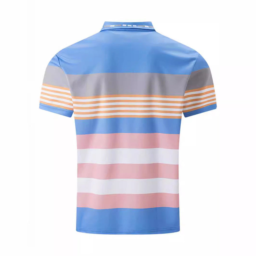 Men's Color Block Digital Printing Button Short Sleeve