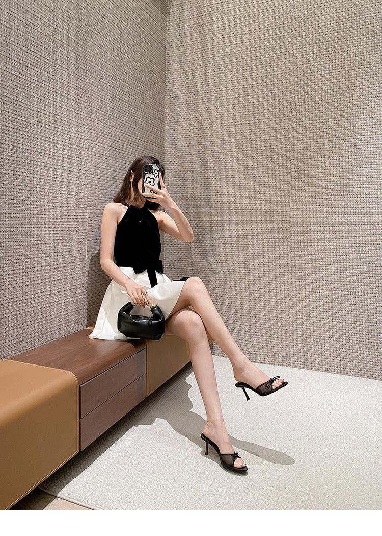 Mesh Breathable Open Toe High Heel Sandals All-match Minimalist Bowknot