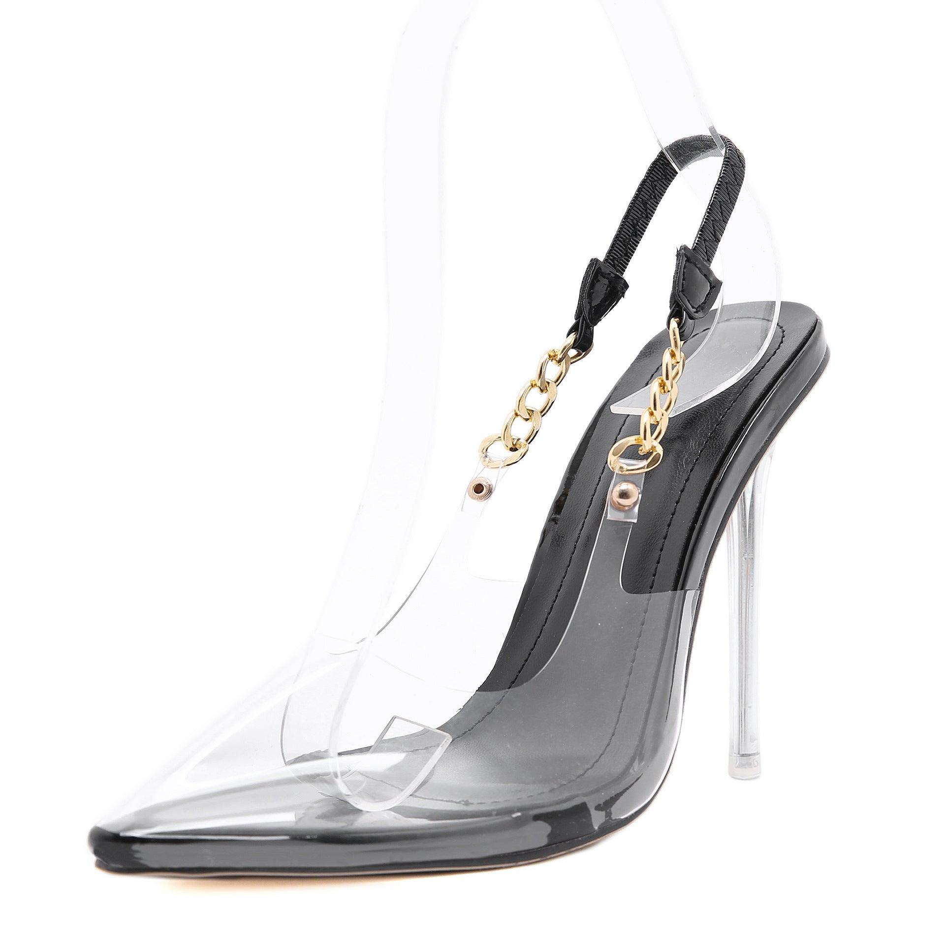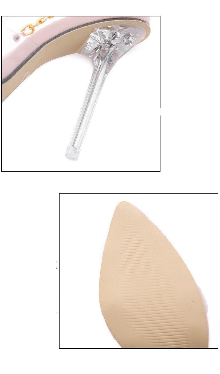 Metal Chain Transparent High Heels Pointed Toe Stiletto Sandals