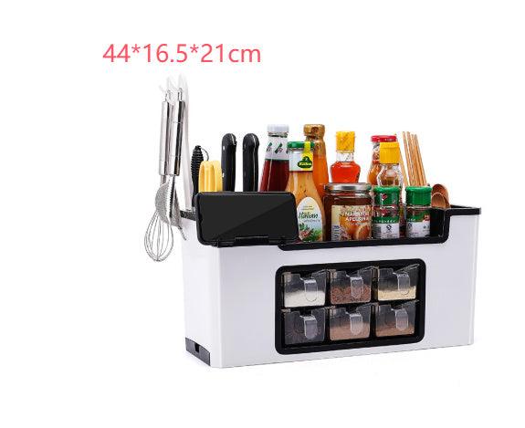 Multifunctional seasoning storage box, not only storage seasoning, but can also store knives, spatula and other cooking utensils.