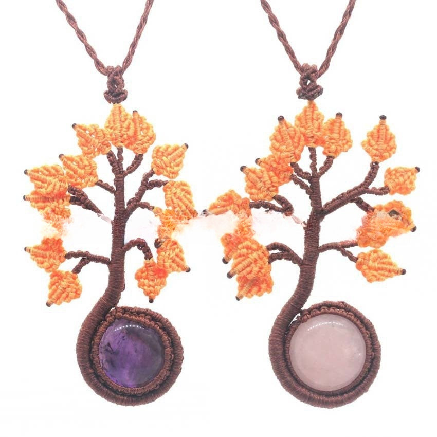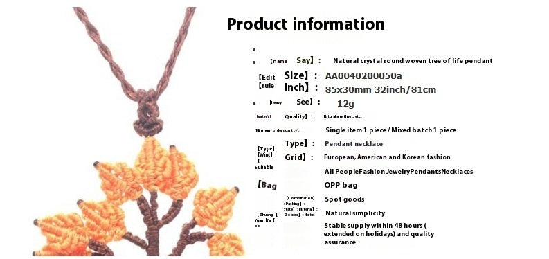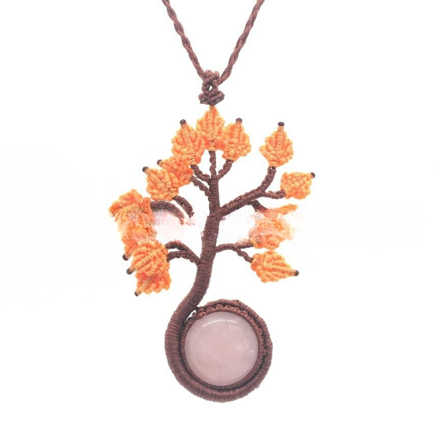 Natural Crystal Round Woven Tree Of Life Pendant Hand Woven Fashion
