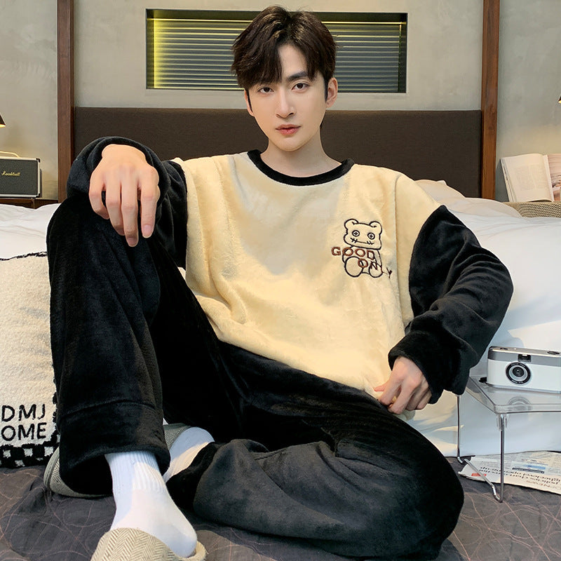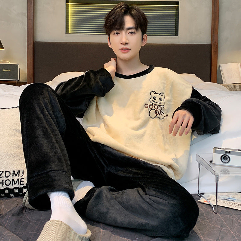 Pajamas Coral Fleece Fleece Lined Padded Warm Keeping Flannel Home Wear Winter Suit