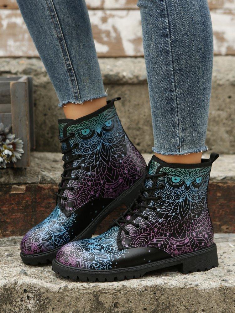 Plus Size Women's Printed Multi-color Printed Martin Boots