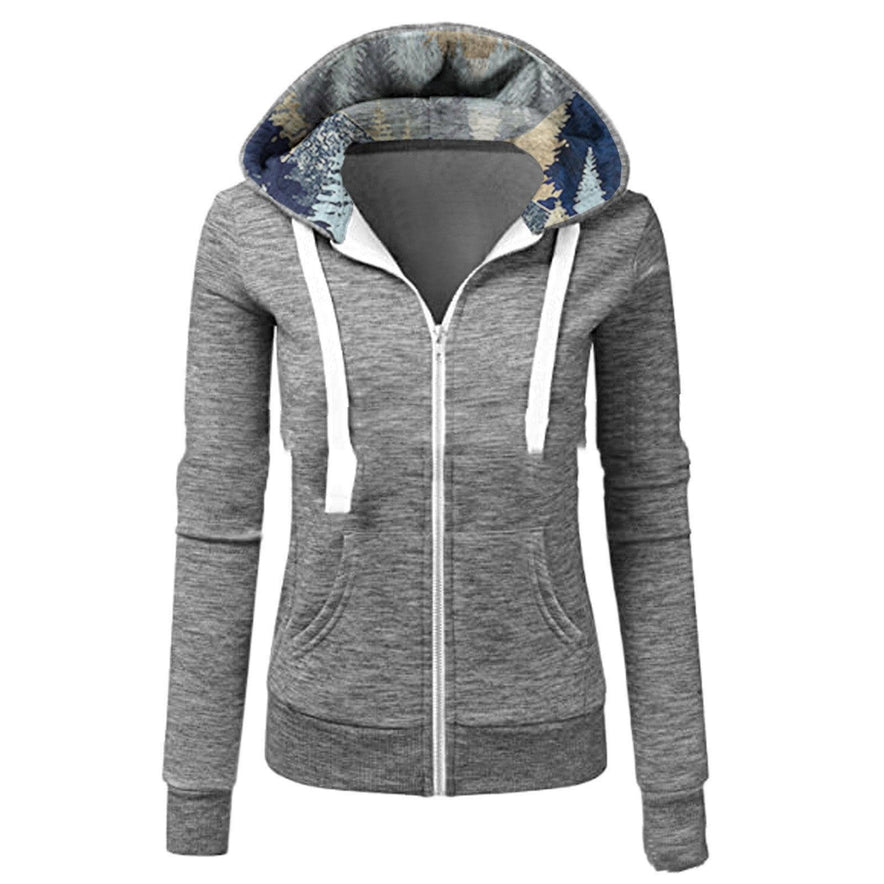Printed Forest Hooded Drawstring Sweater Casual Loose Cardigan Jacket