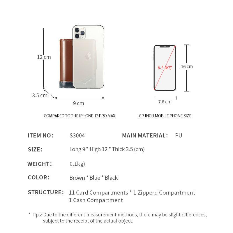 PU Leather Multifunctional Zipper Short Men's Wallet