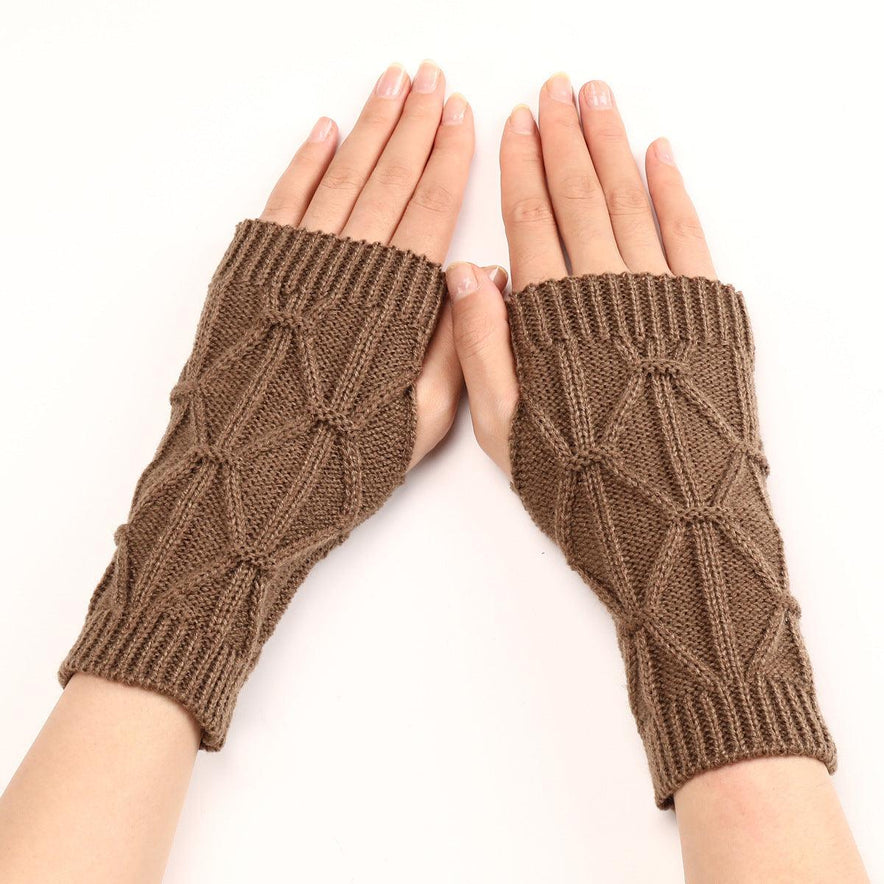 Rhombus Fashion Oversleeve Knitted Wool Keep Warm Half Finger Gloves