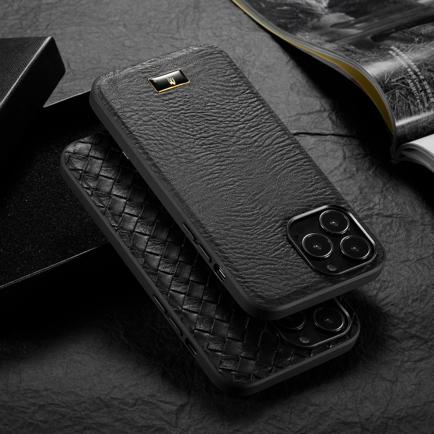 Simple Solid Color Business Leather Pattern All-inclusive Phone Case