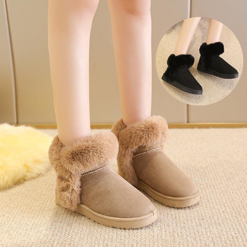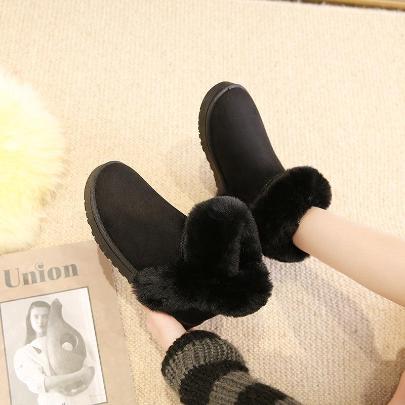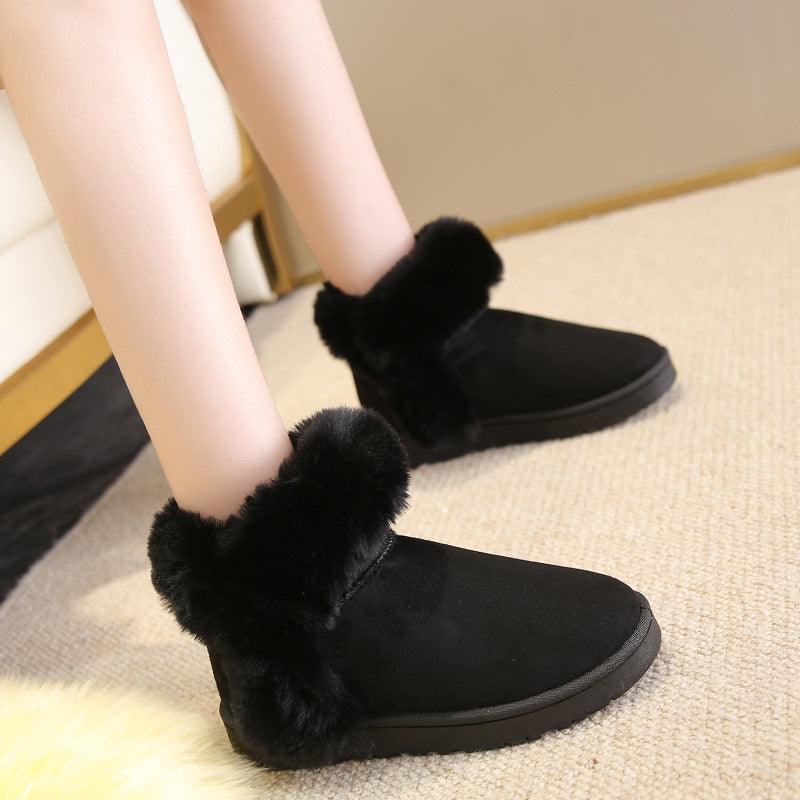 Snow Boots For Women Students Winter Warm Slip On Fluffy Platform Comfy Fleece Ankle Boots Non-slip Plush Cotton Shoes