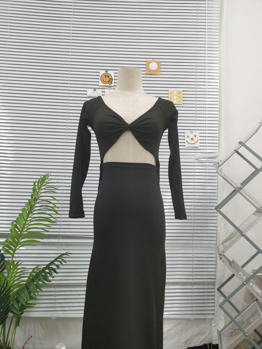 Solid Color Long Sleeve Elegant Slim Fit Hollow Backless Two-way Wear Dress