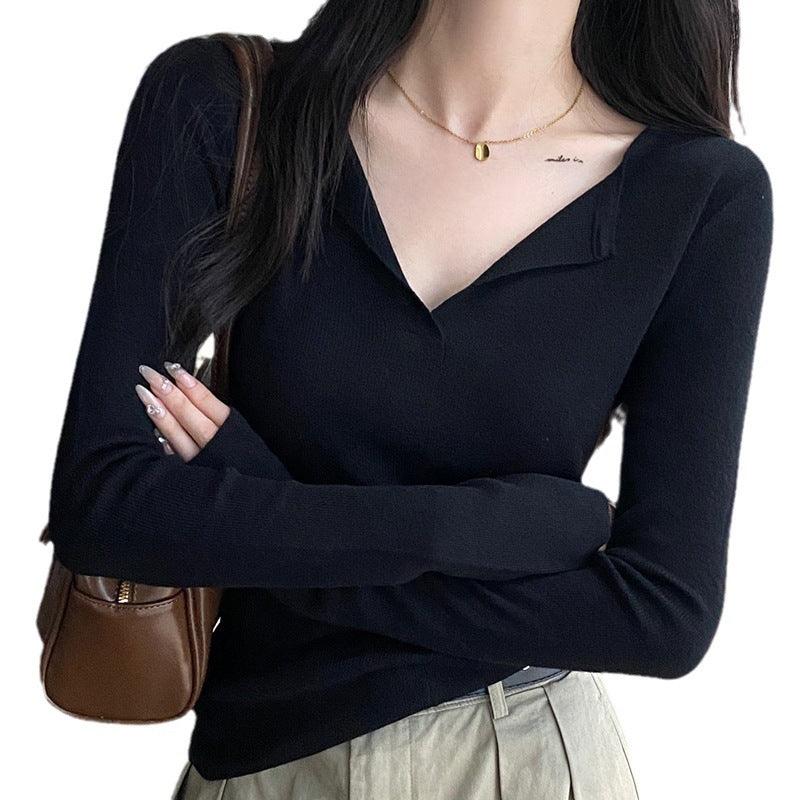 Solid Color Peter Pan Collar Knitwear Comfortable Soft Bottoming Shirt