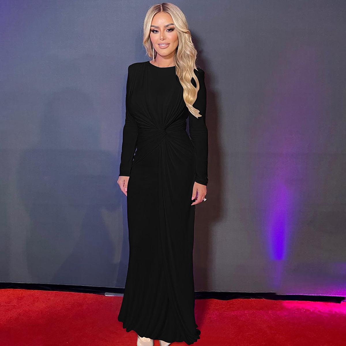 Solid Color Slim Fit Round Neck Long Sleeves Dress