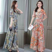 Spring And Summer Slim Printed Dress Mid-Length Beach Skirt Middle-Aged And Elderly Women'S Clothing