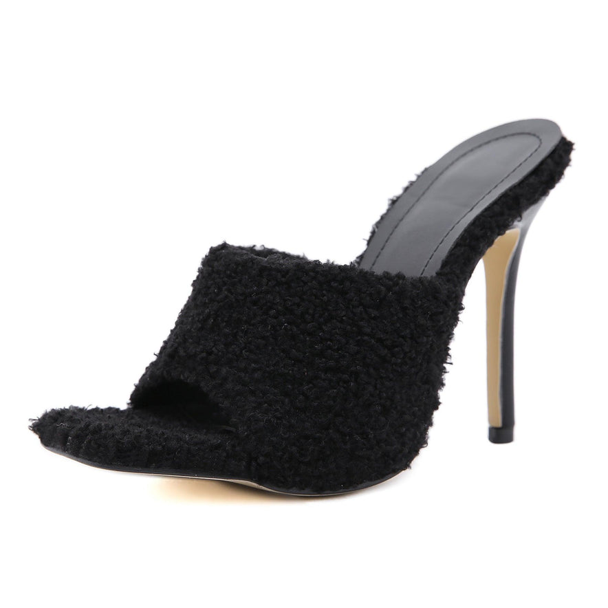 Square Head Hairy Drag High-Heeled Sandals And Slippers