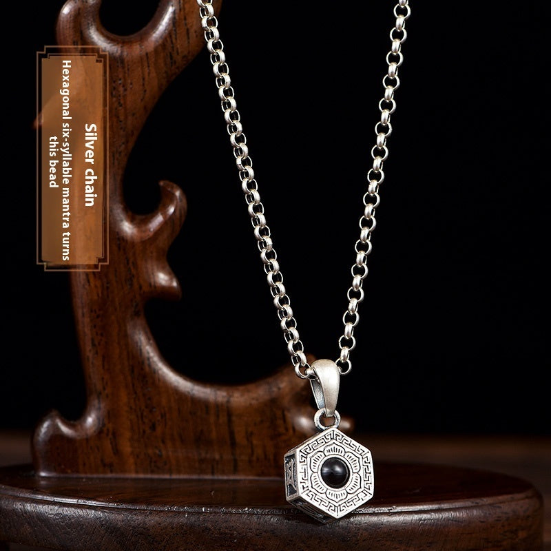 Sterling Silver 990 Six Words Mantra Lucky Beads Pendant