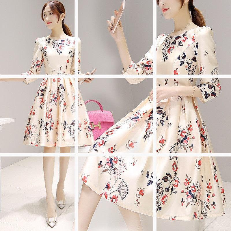 Summer New Three-Quarter Sleeves Puffy Skirt Mid-Length Temperament Bottoming Slim Dress