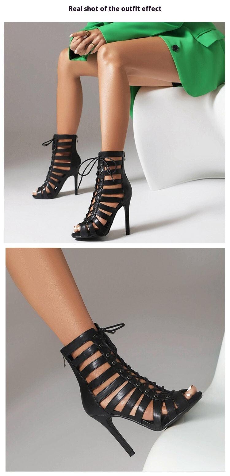 Summer Open Toed High Heel Lace-up Sandal Boots